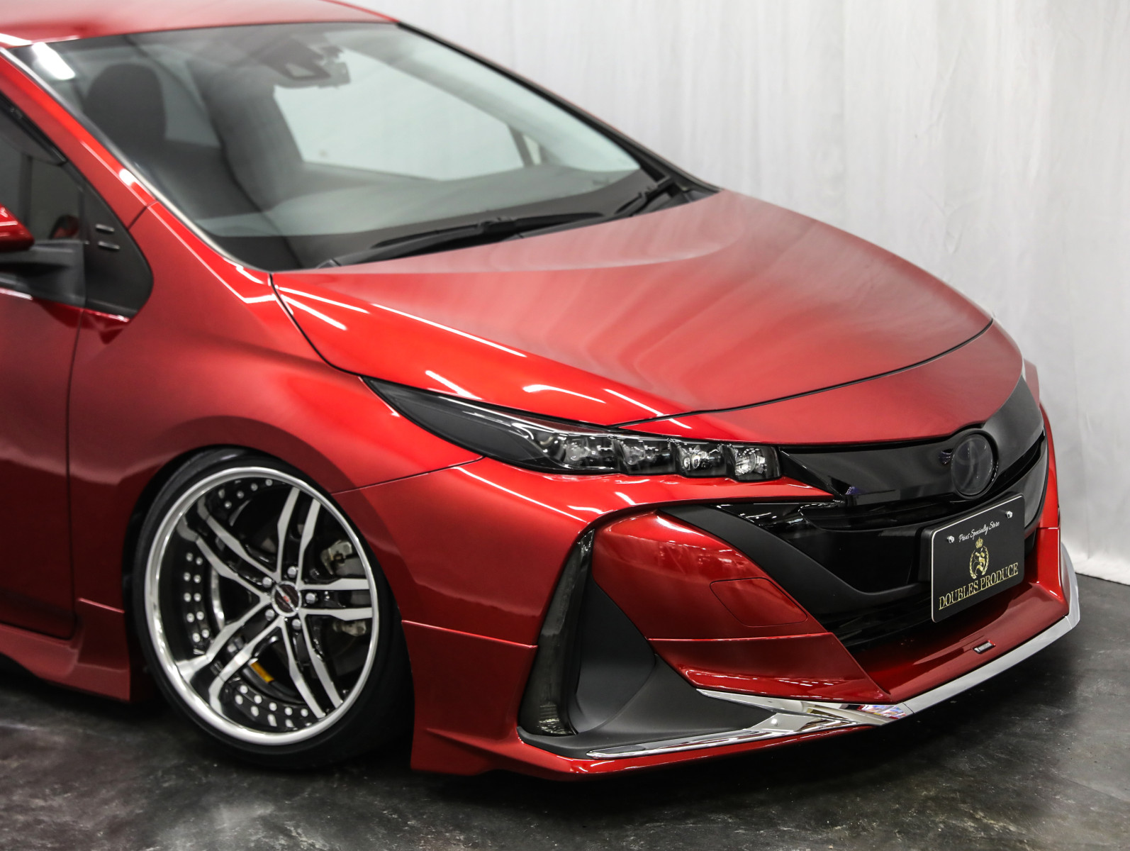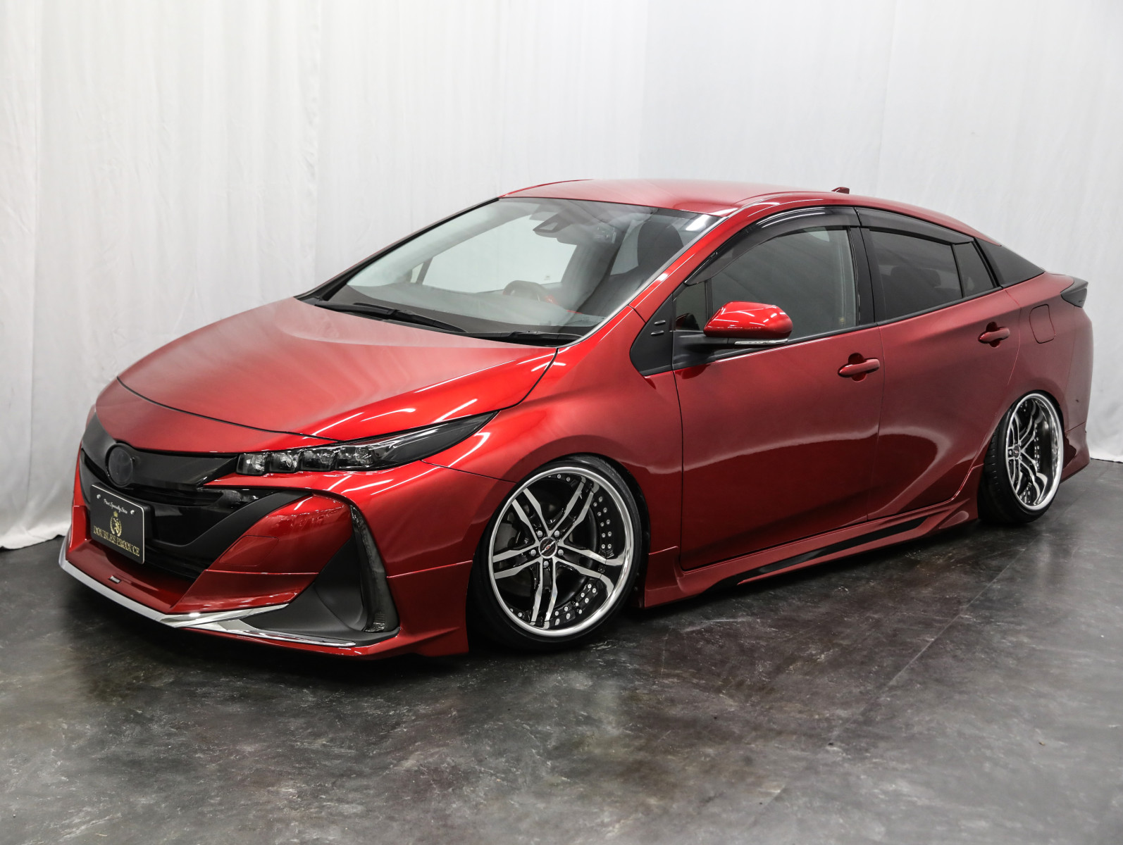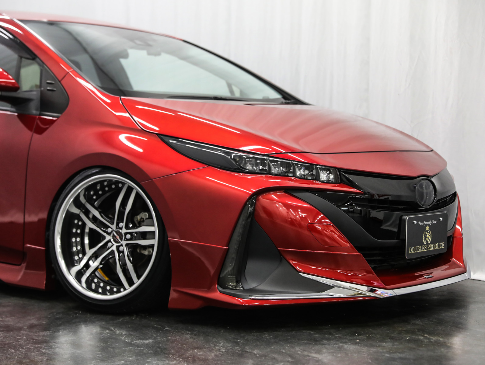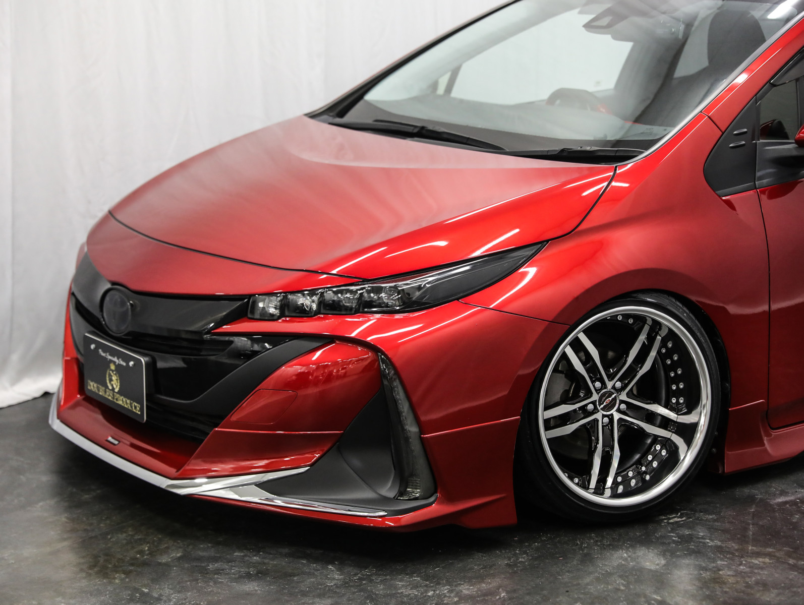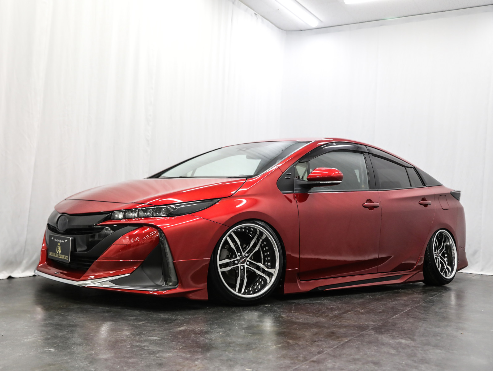プリウスPHV S モデリスタフルエアロ/シャレン2ピース18インチ深リムアルミホイール/フルタップ車高調/リアキャンバーアーム/赤黒グラデーションインテリアパネル/ツライチ/4眼RGBカラーアイヘッド/スモークテール/