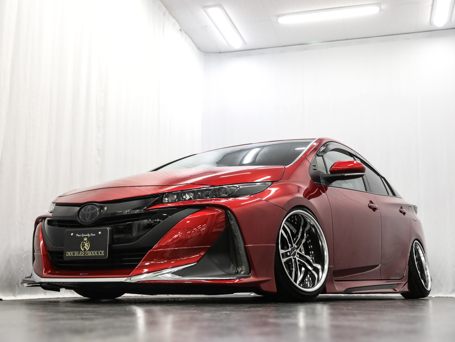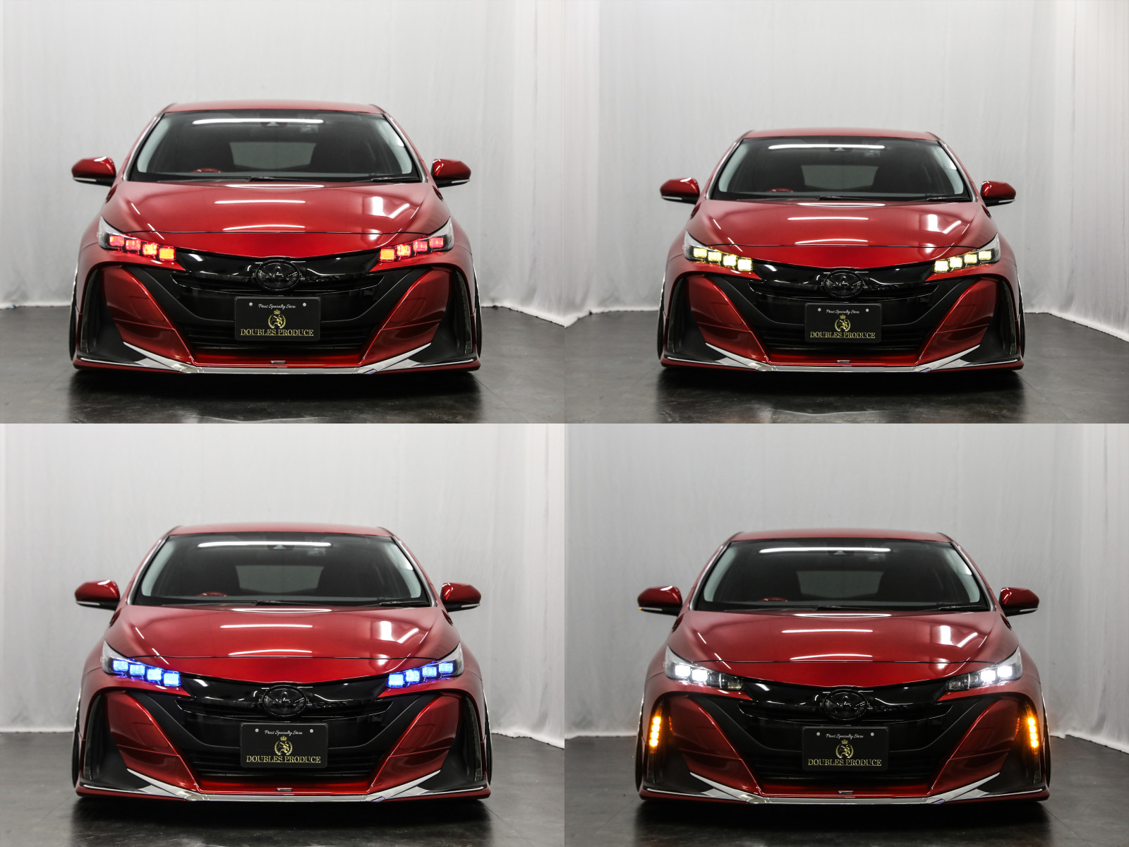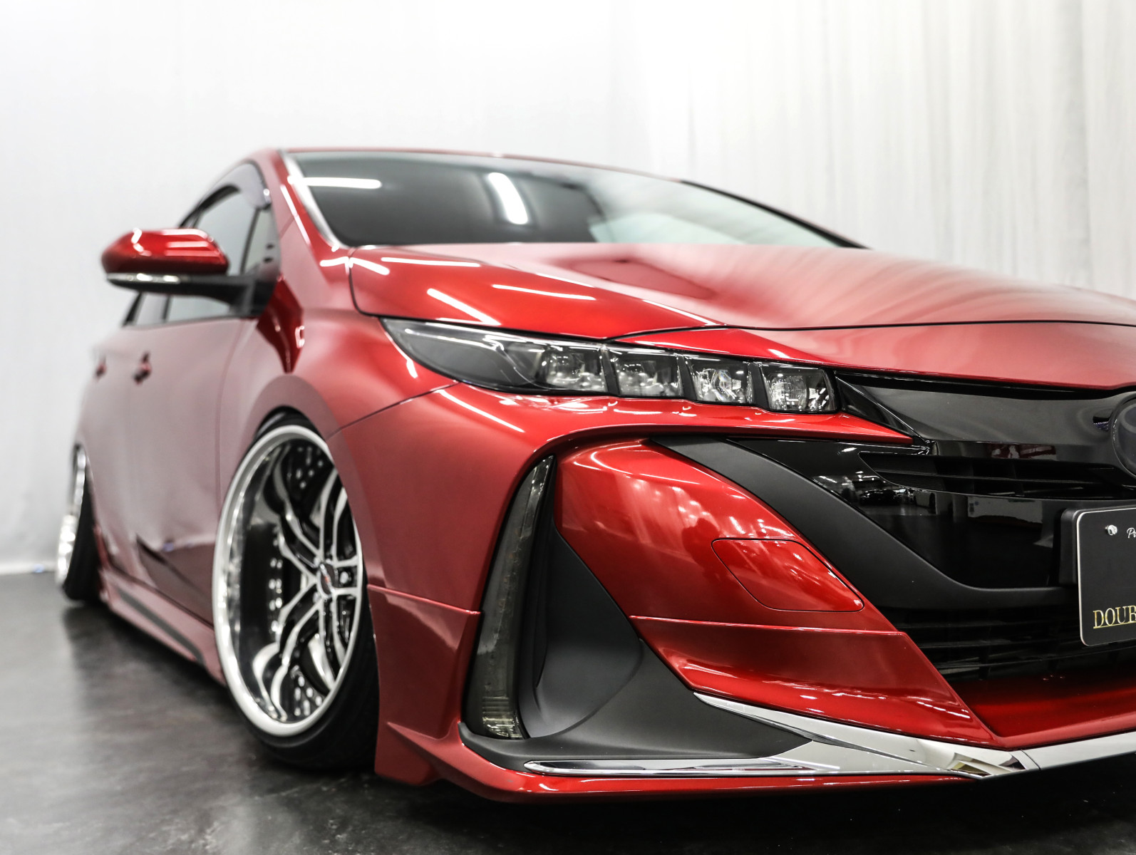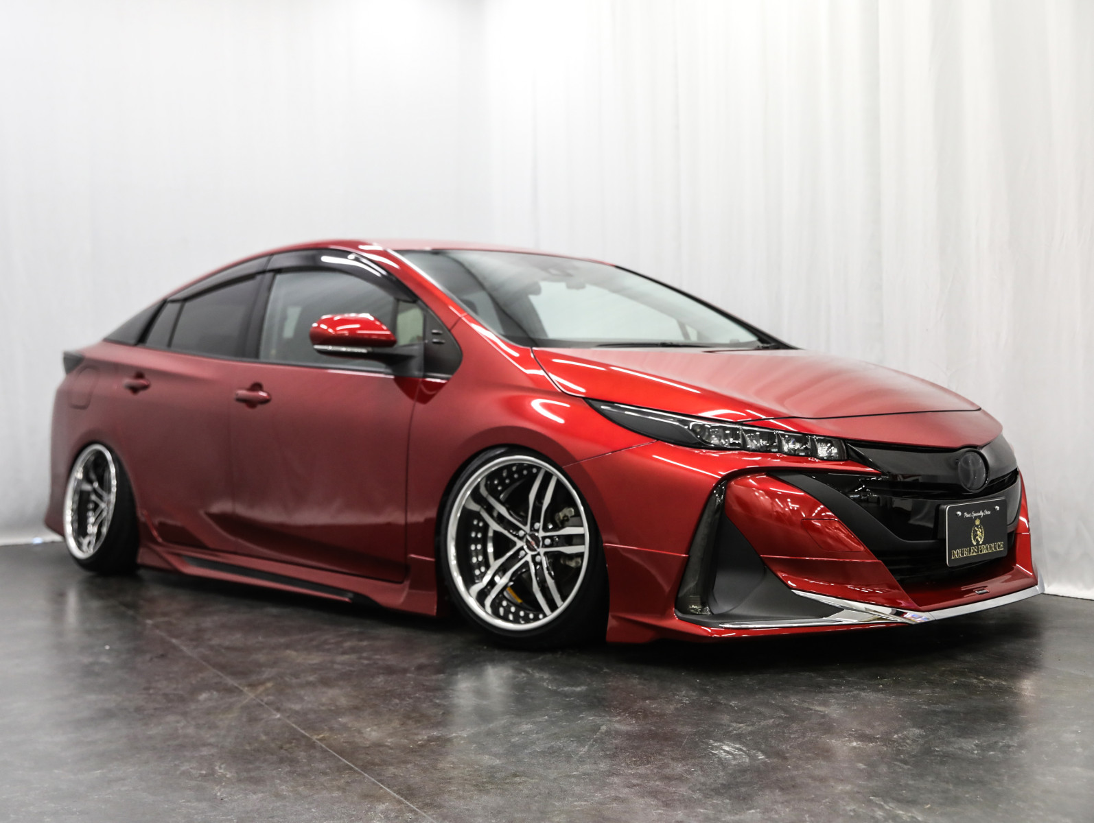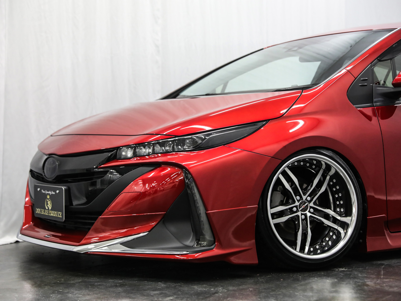 プリウスPHV S モデリスタフルエアロ/シャレン2ピース18インチ深リムアルミホイール/フルタップ車高調/リアキャンバーアーム/赤黒グラデーションインテリアパネル/ツライチ/4眼RGBカラーアイヘッド/スモークテール/