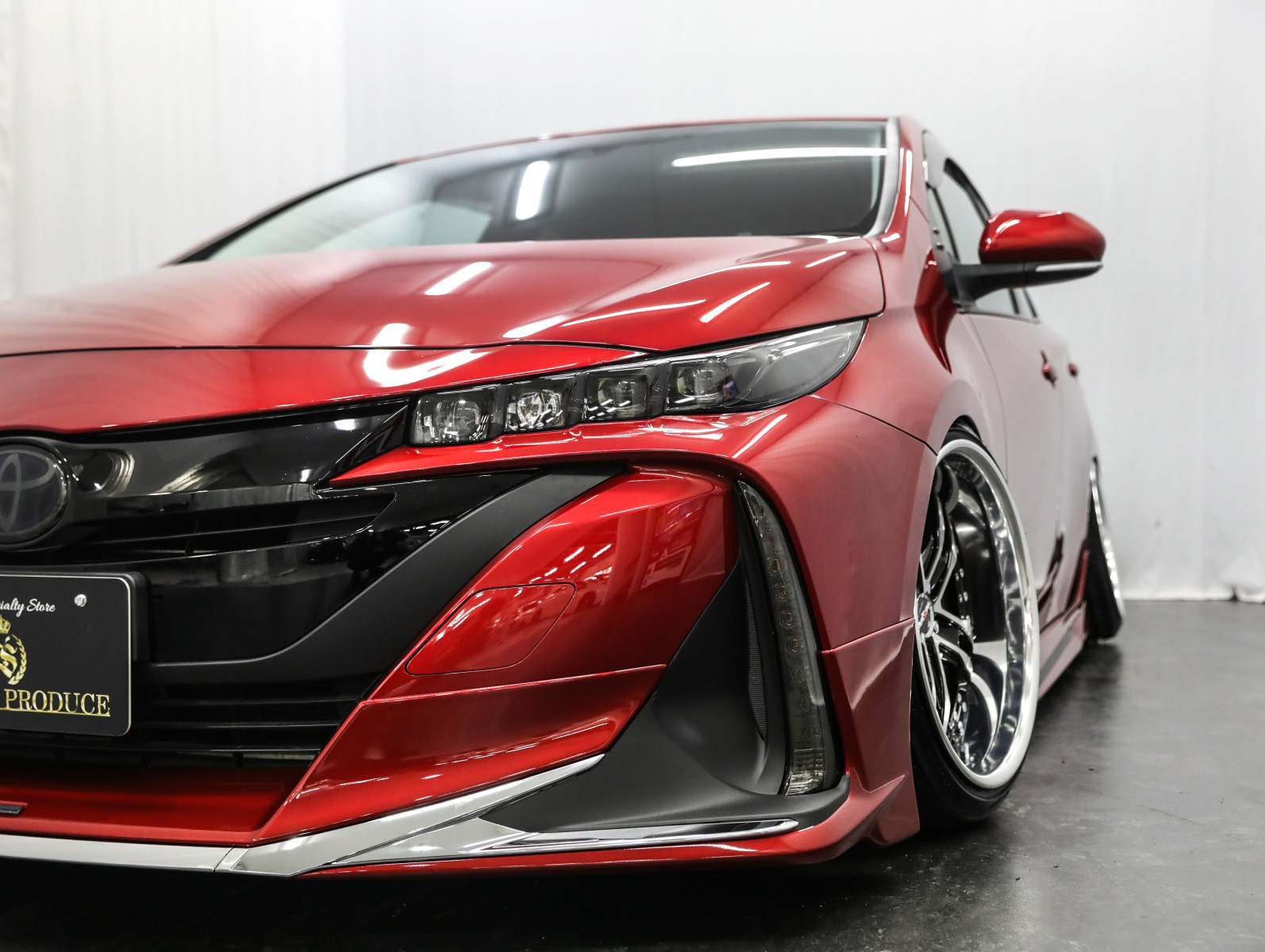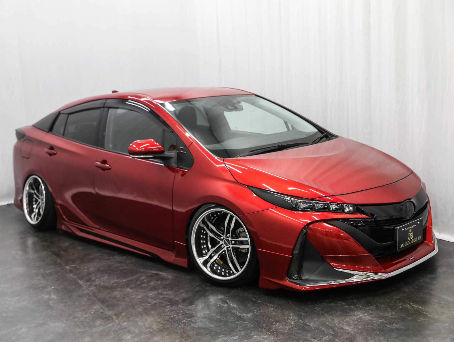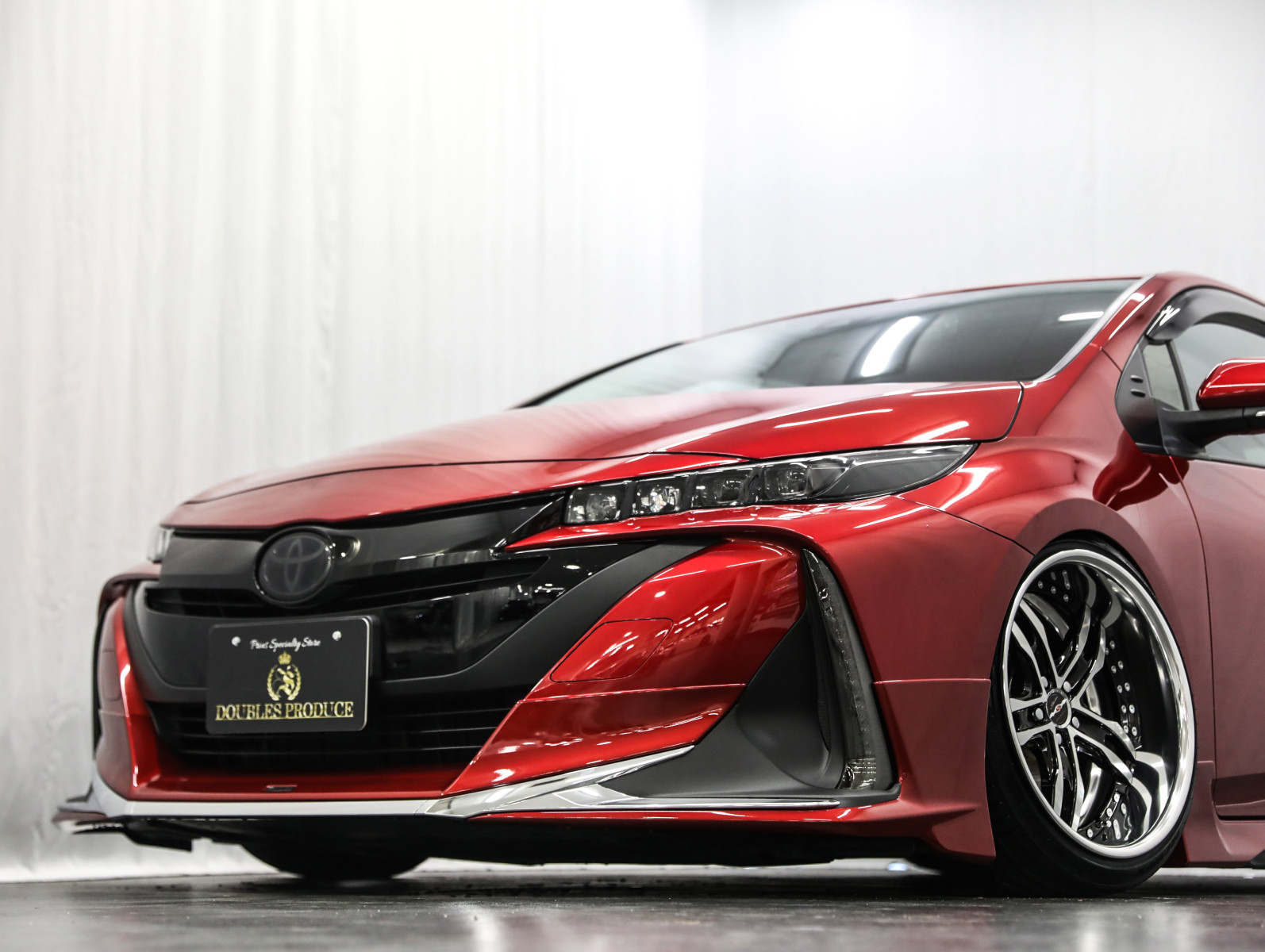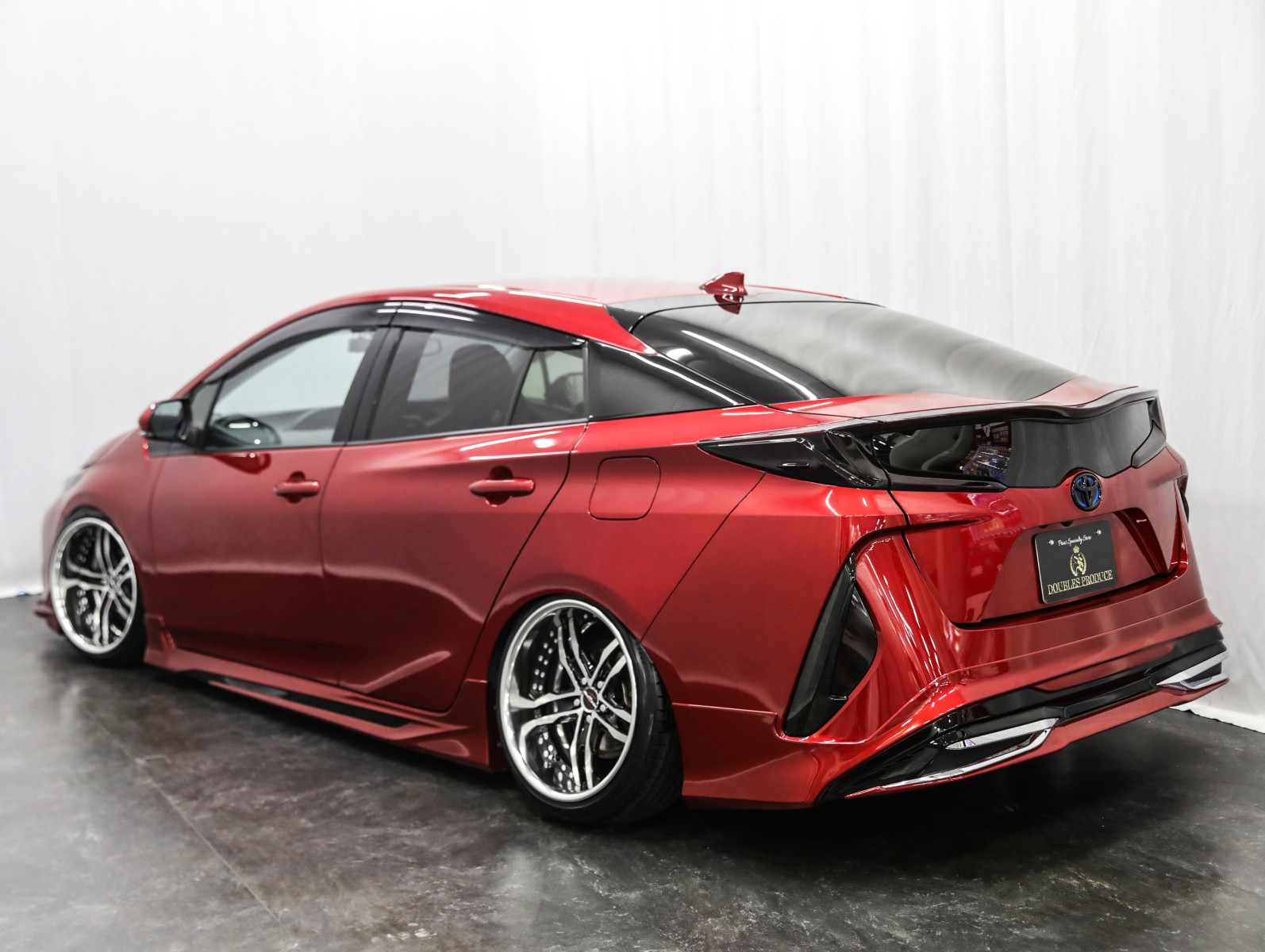 プリウスPHV S モデリスタフルエアロ/シャレン2ピース18インチ深リムアルミホイール/フルタップ車高調/リアキャンバーアーム/赤黒グラデーションインテリアパネル/ツライチ/4眼RGBカラーアイヘッド/スモークテール/