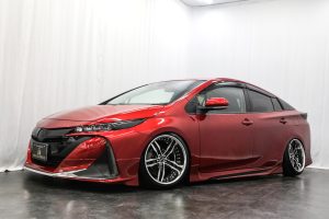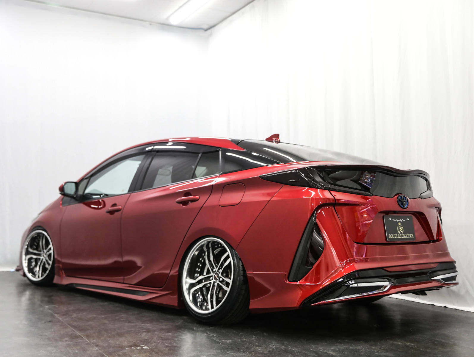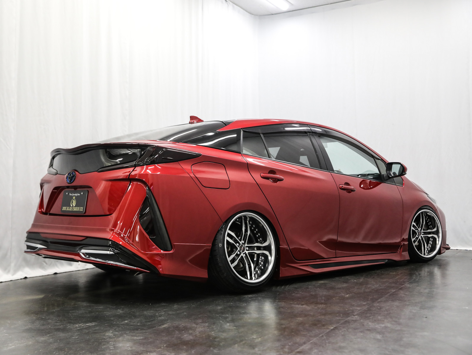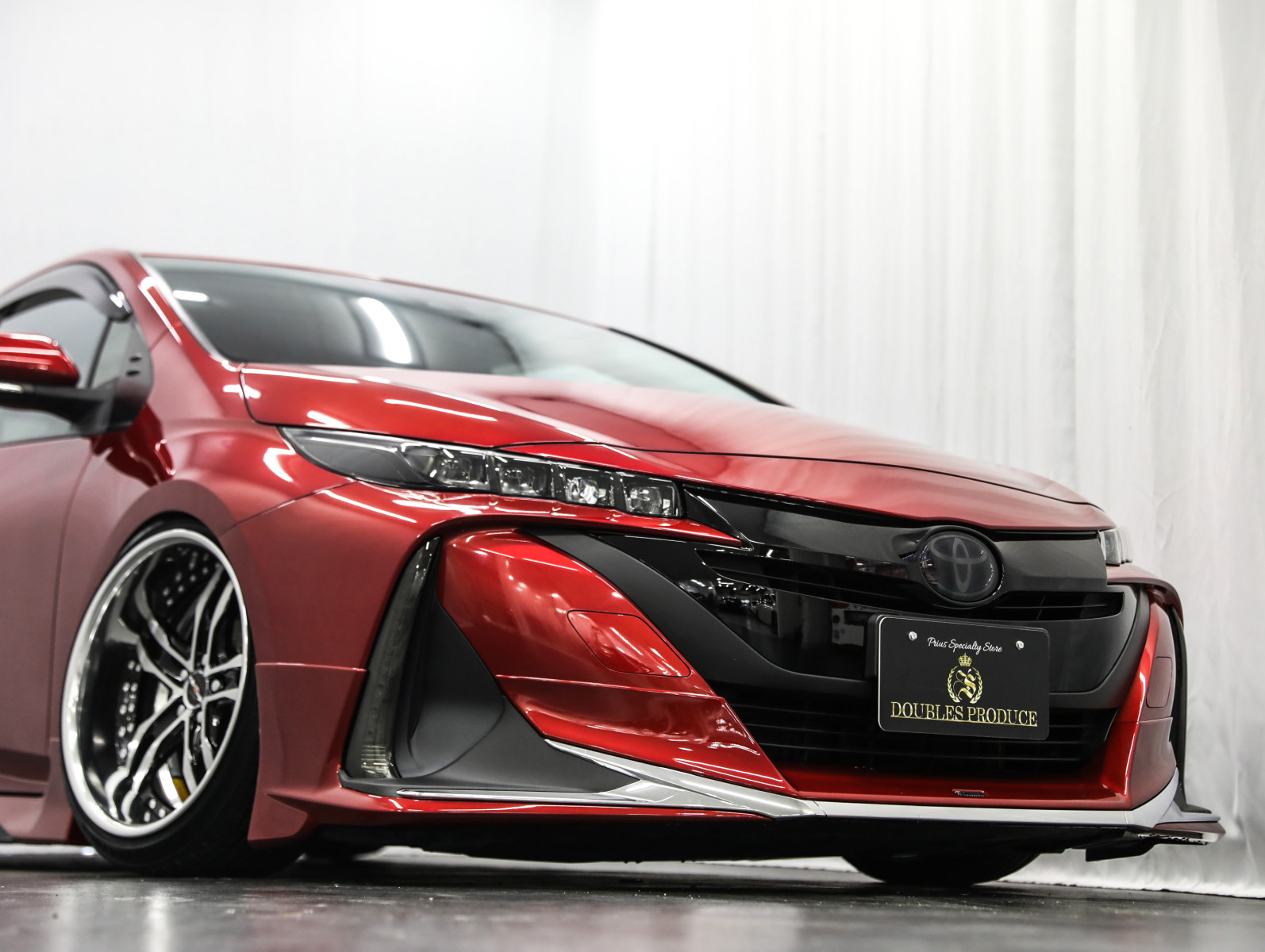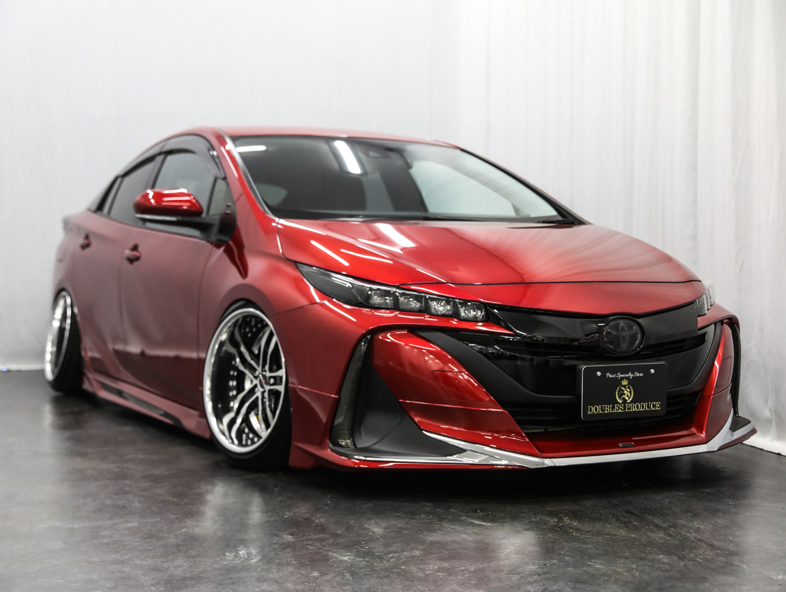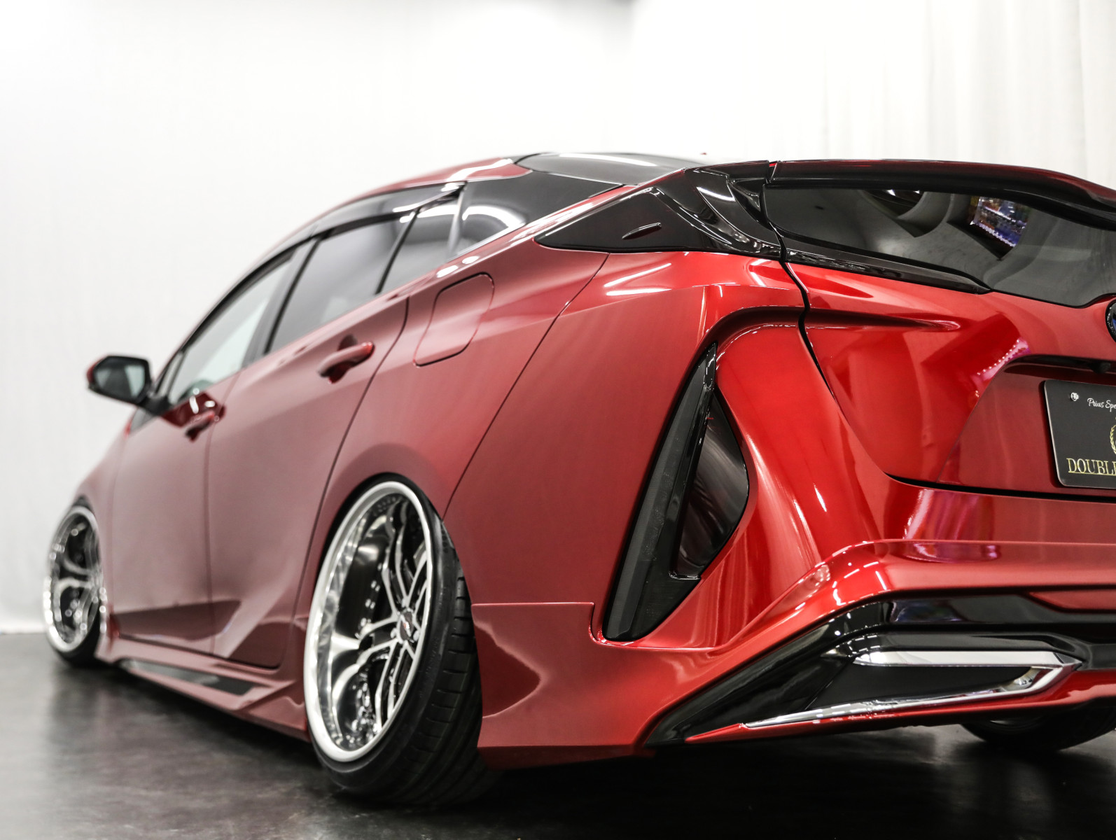 プリウスPHV S モデリスタフルエアロ/シャレン2ピース18インチ深リムアルミホイール/フルタップ車高調/リアキャンバーアーム/赤黒グラデーションインテリアパネル/ツライチ/4眼RGBカラーアイヘッド/スモークテール/