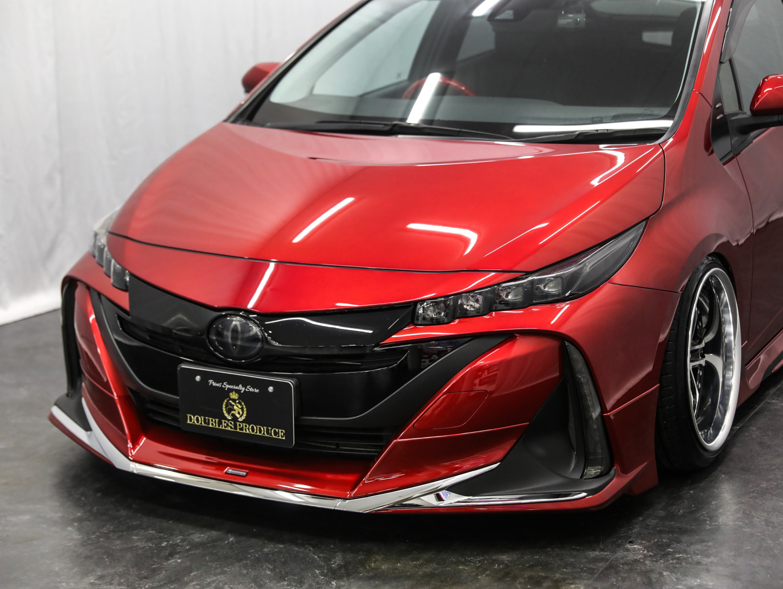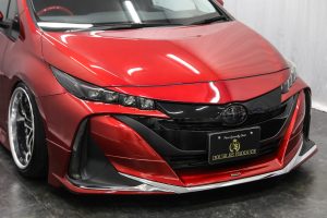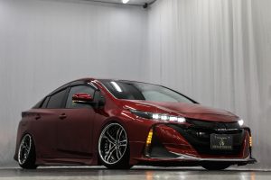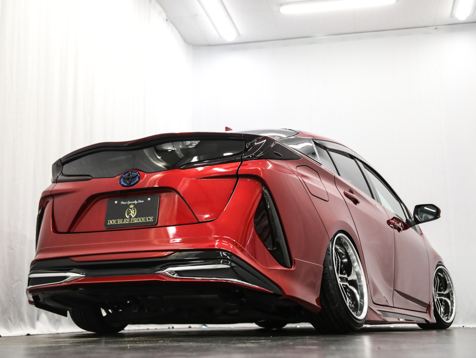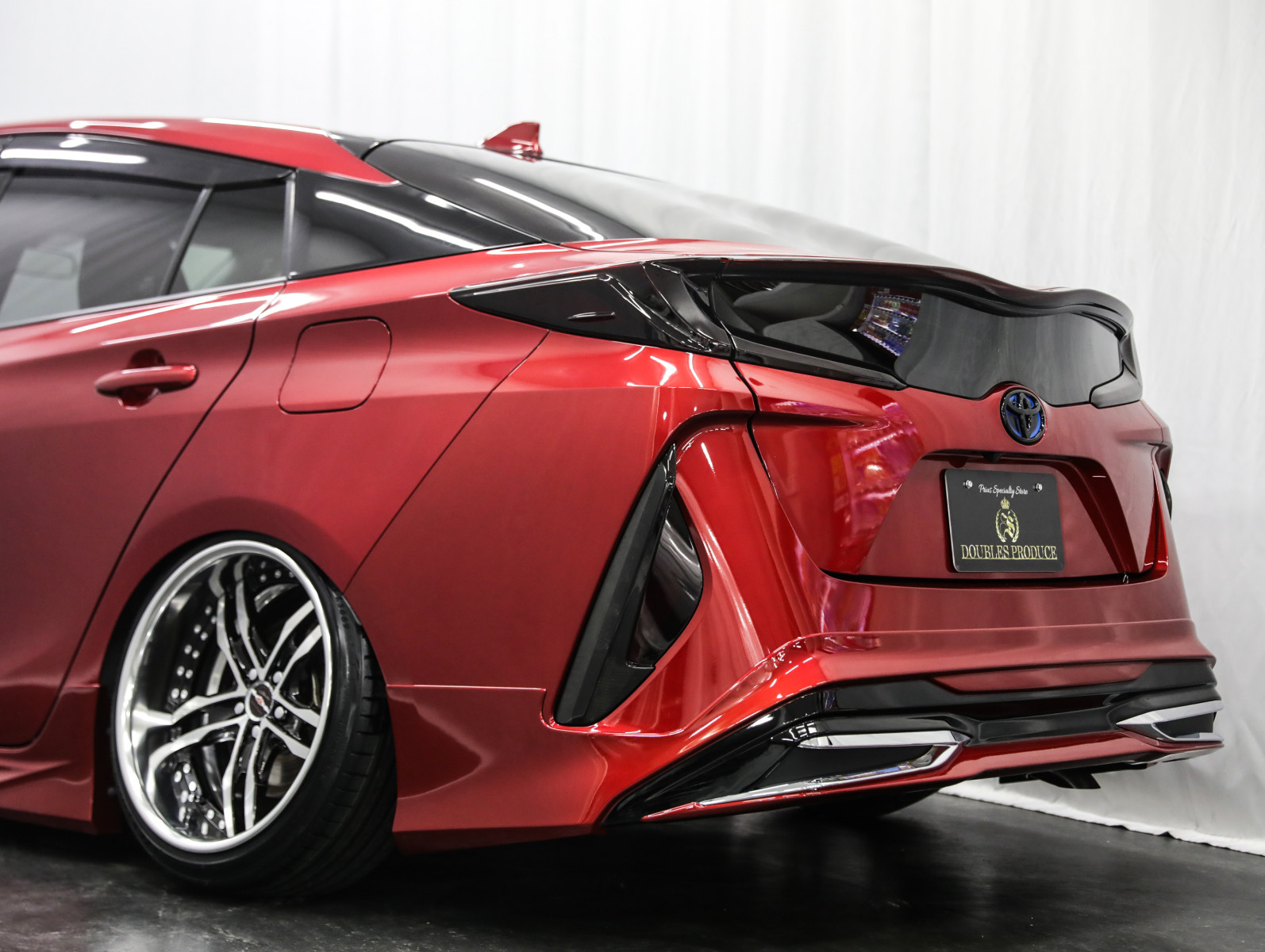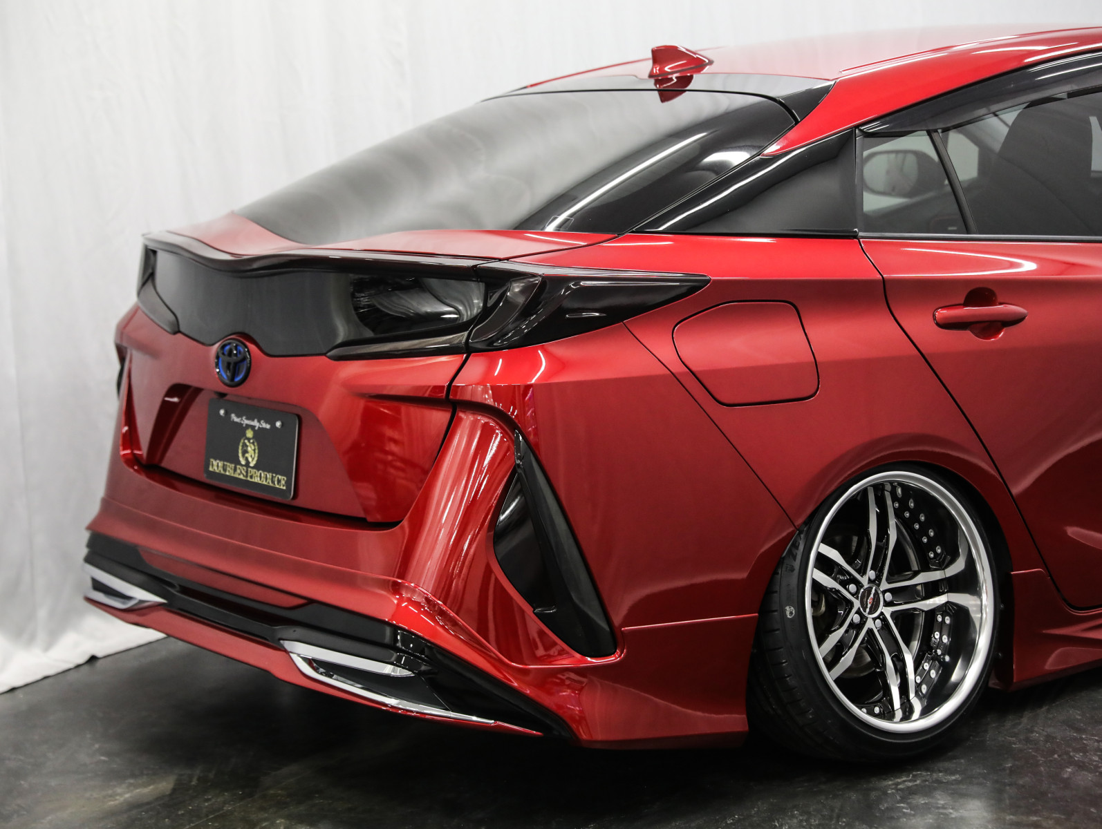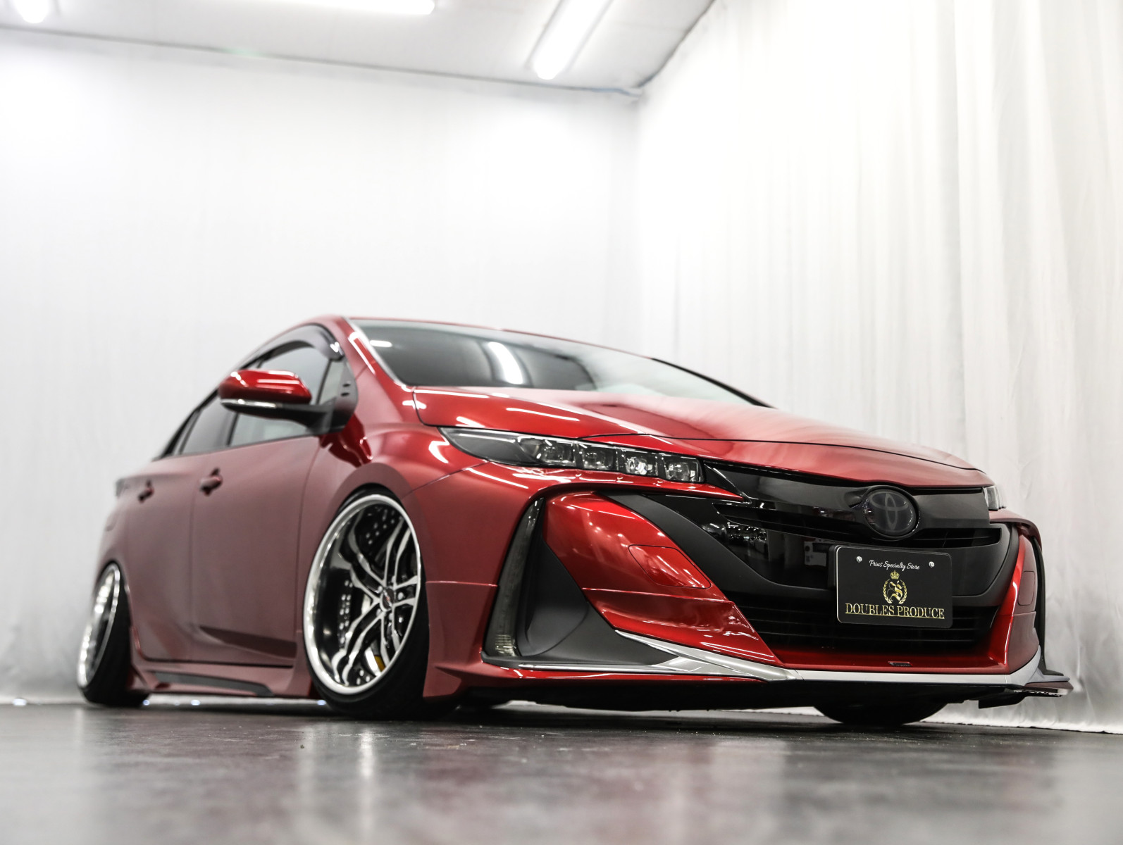 プリウスPHV S モデリスタフルエアロ/シャレン2ピース18インチ深リムアルミホイール/フルタップ車高調/リアキャンバーアーム/赤黒グラデーションインテリアパネル/ツライチ/4眼RGBカラーアイヘッド/スモークテール/