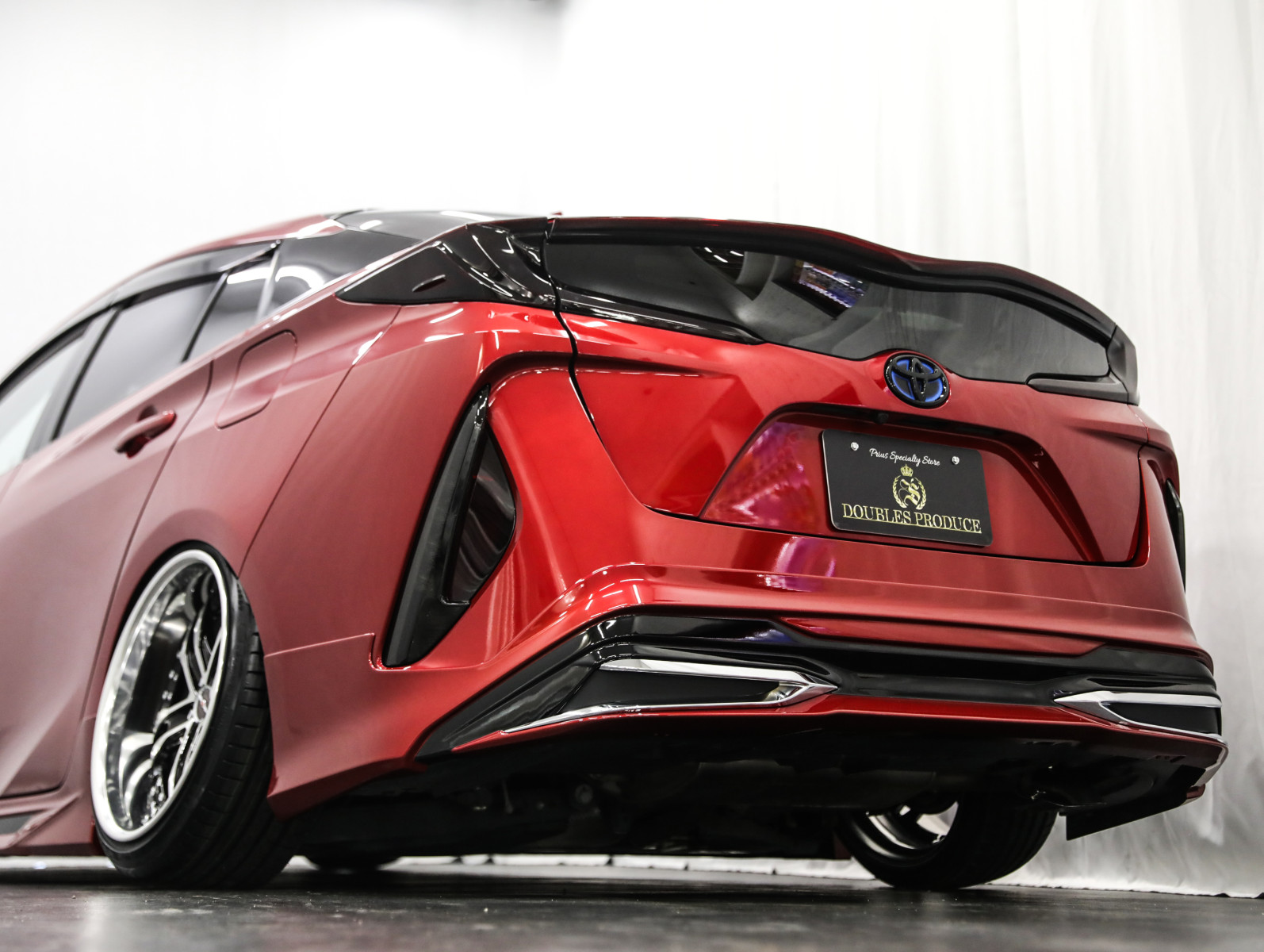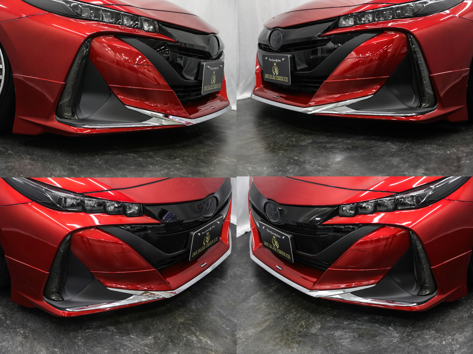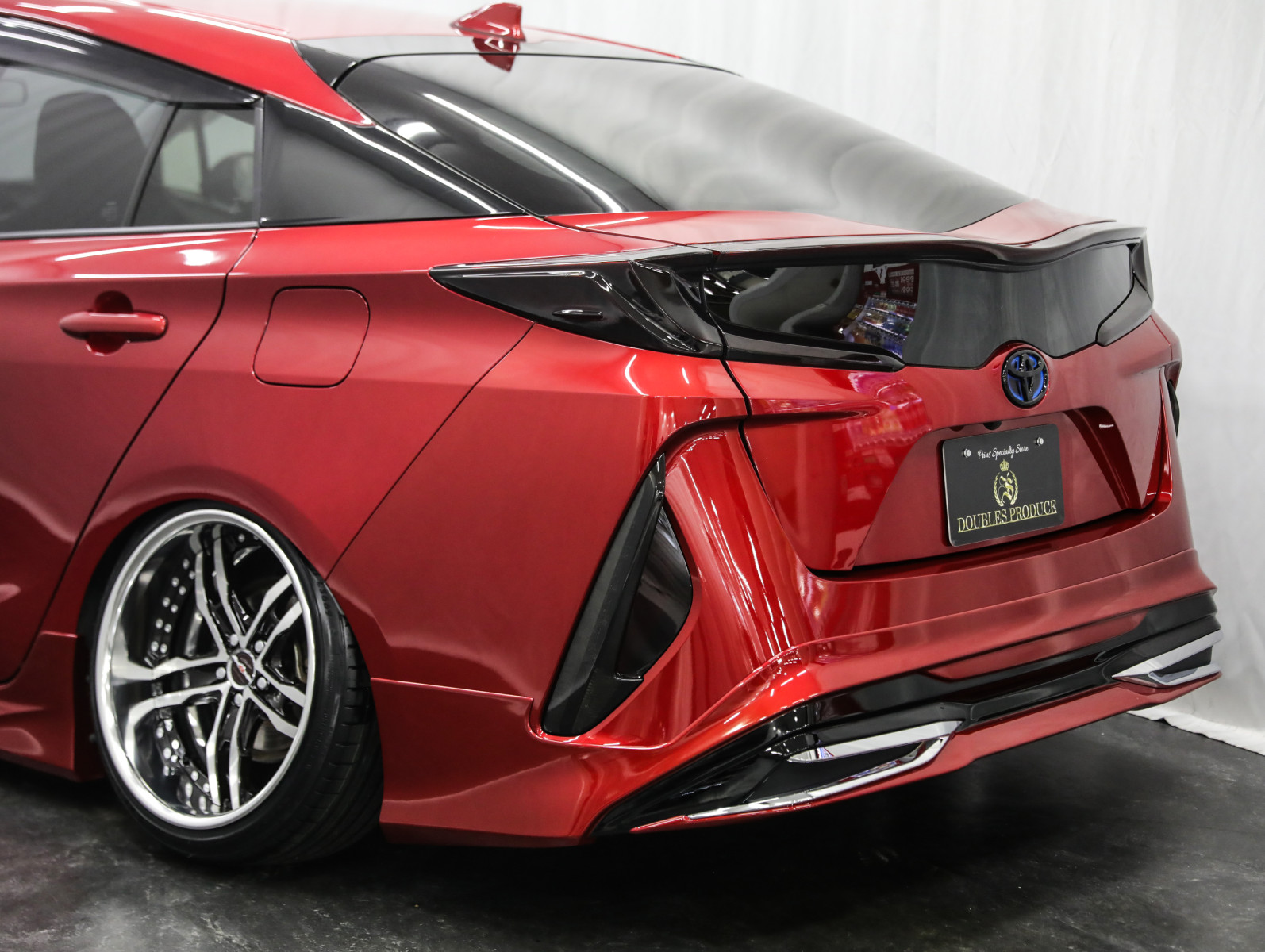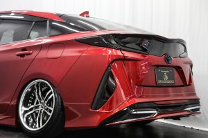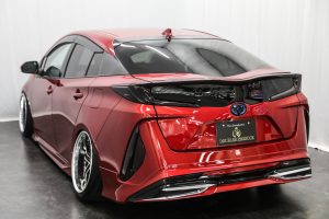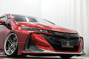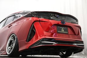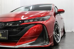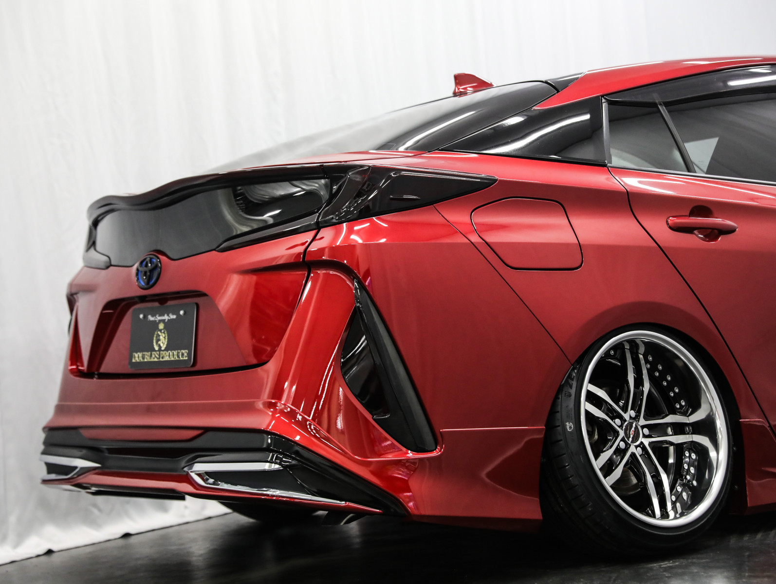 プリウスPHV S モデリスタフルエアロ/シャレン2ピース18インチ深リムアルミホイール/フルタップ車高調/リアキャンバーアーム/赤黒グラデーションインテリアパネル/ツライチ/4眼RGBカラーアイヘッド/スモークテール/