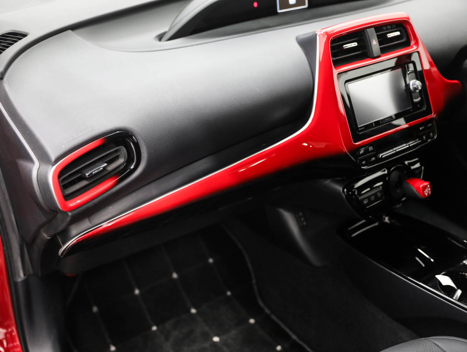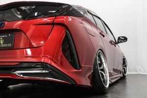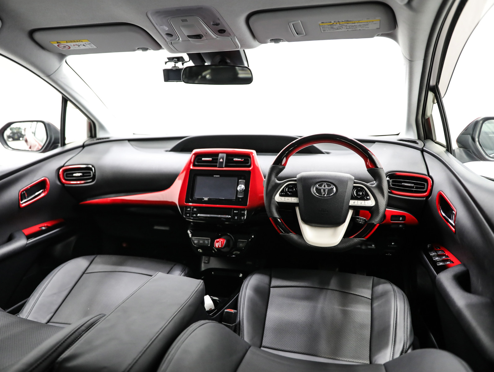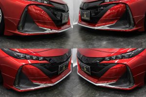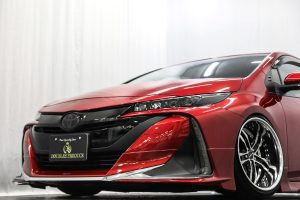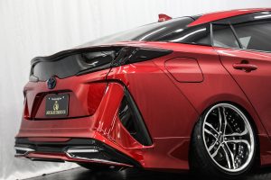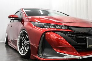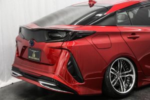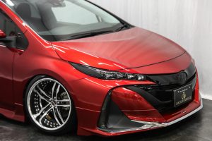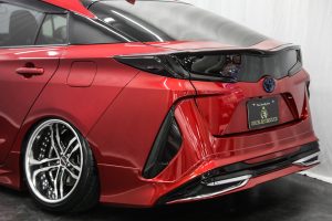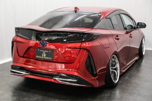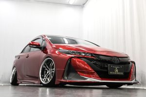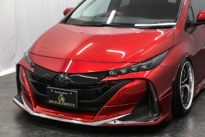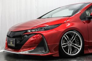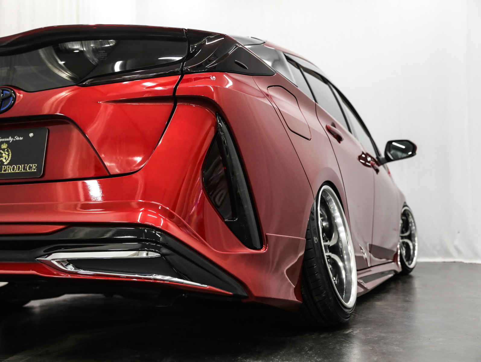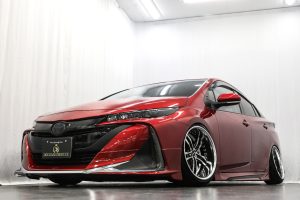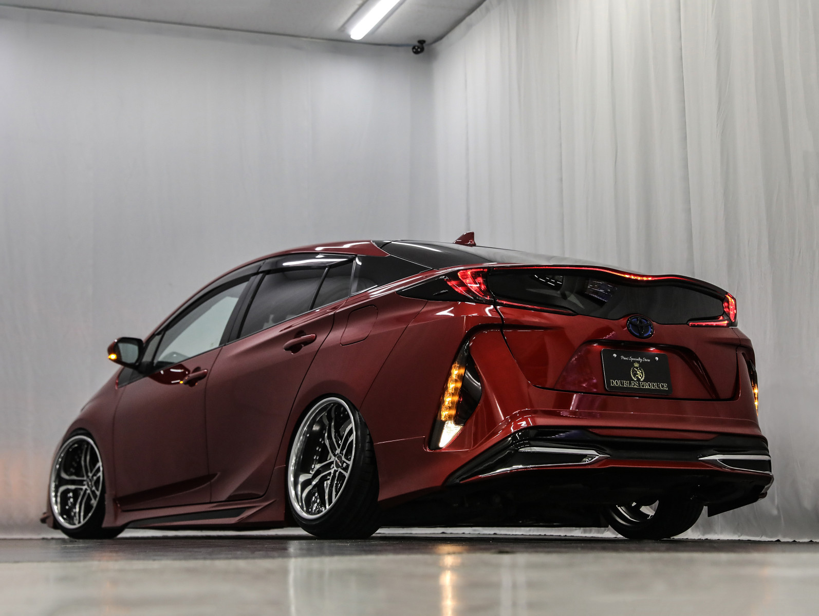 プリウスPHV S モデリスタフルエアロ/シャレン2ピース18インチ深リムアルミホイール/フルタップ車高調/リアキャンバーアーム/赤黒グラデーションインテリアパネル/ツライチ/4眼RGBカラーアイヘッド/スモークテール/