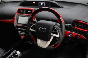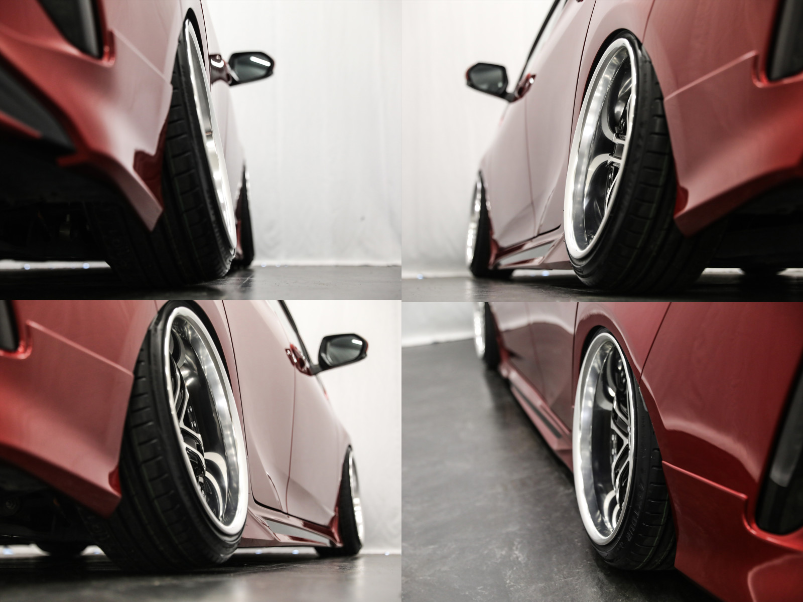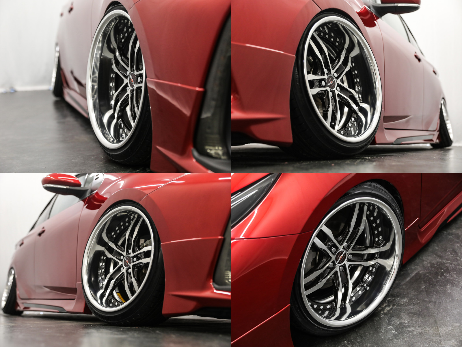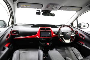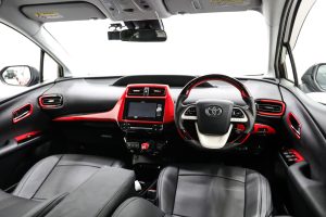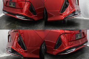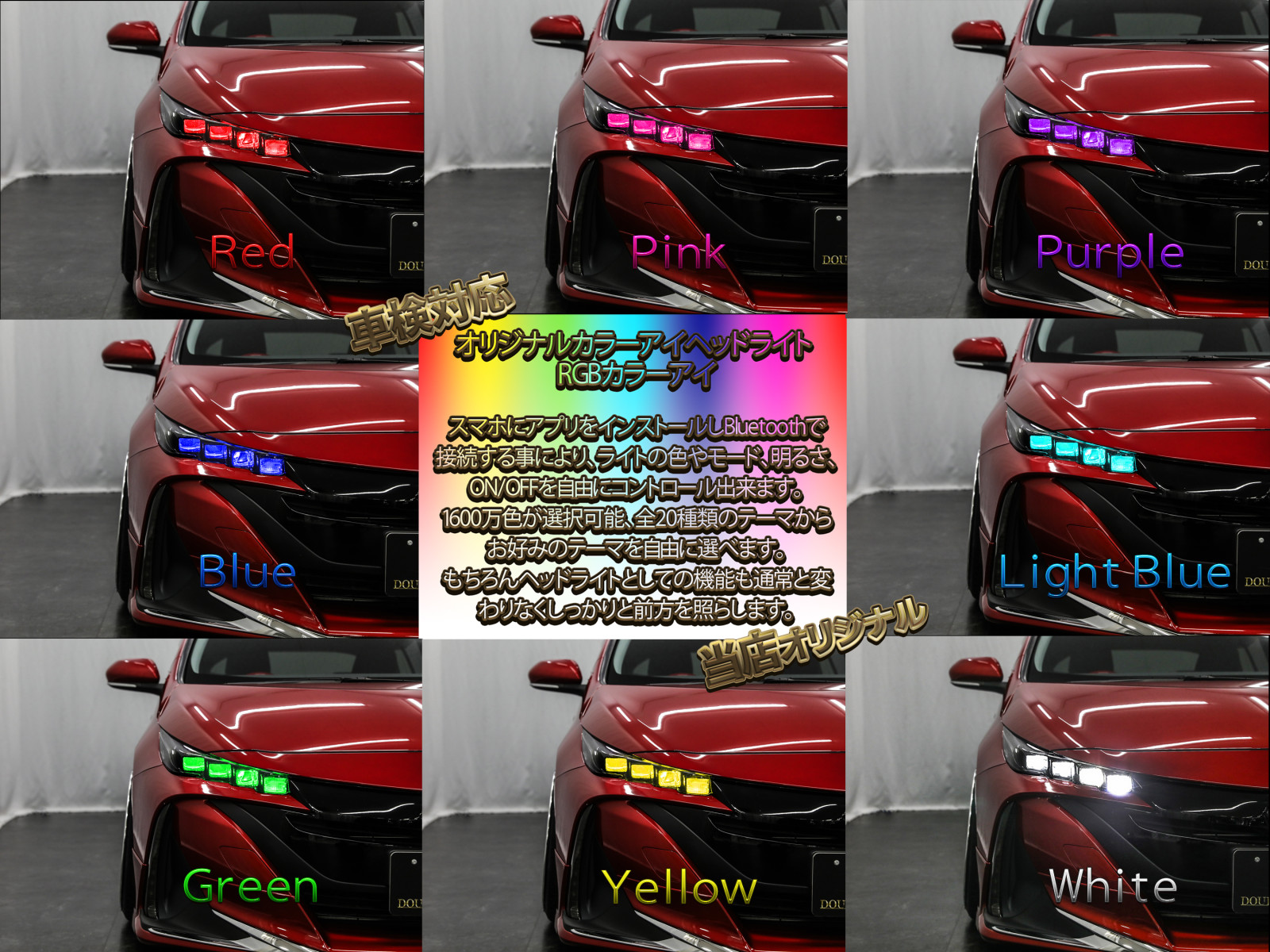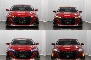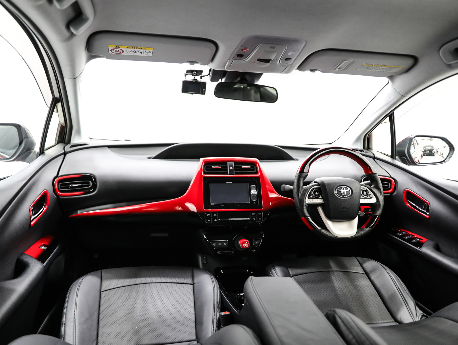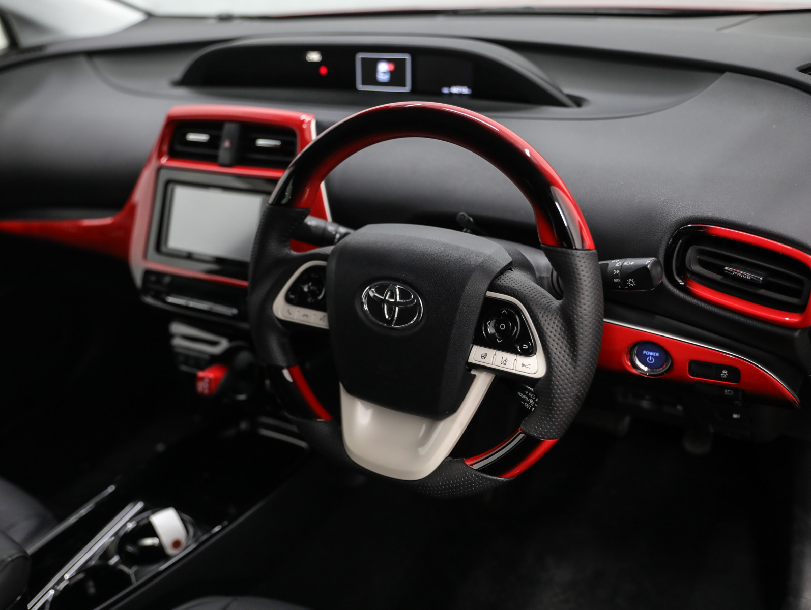 プリウスPHV S モデリスタフルエアロ/シャレン2ピース18インチ深リムアルミホイール/フルタップ車高調/リアキャンバーアーム/赤黒グラデーションインテリアパネル/ツライチ/4眼RGBカラーアイヘッド/スモークテール/