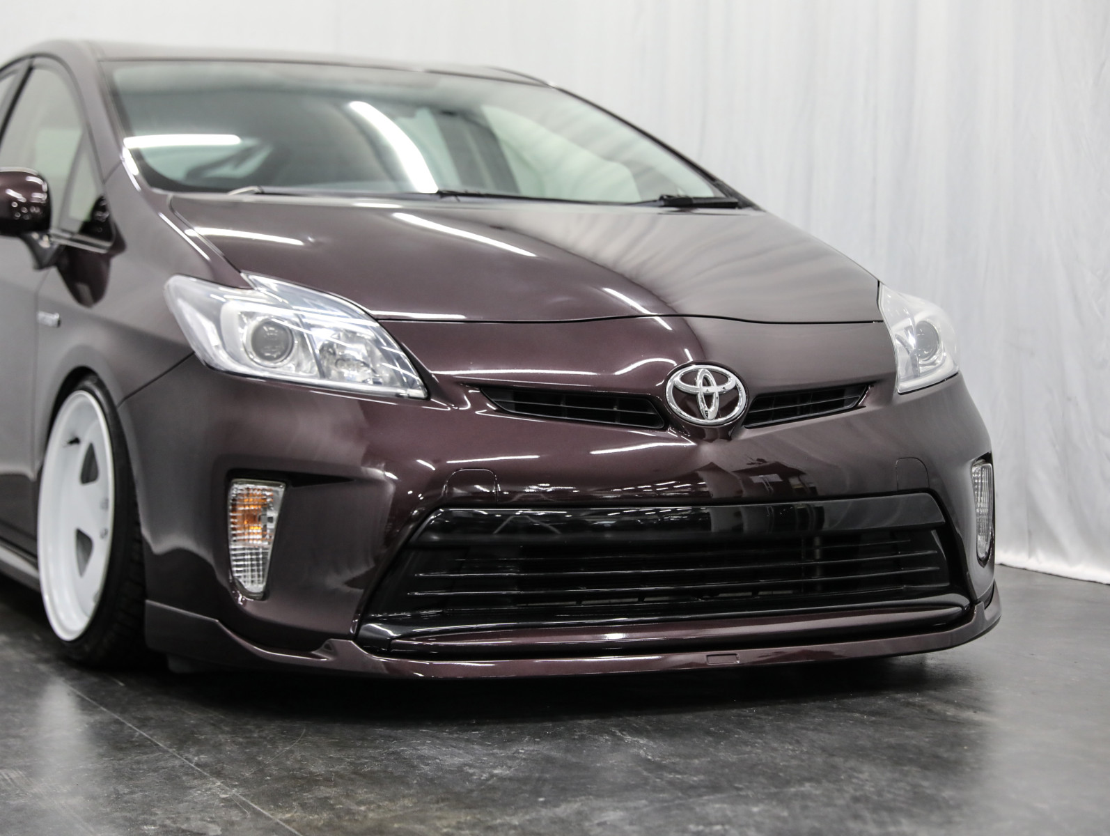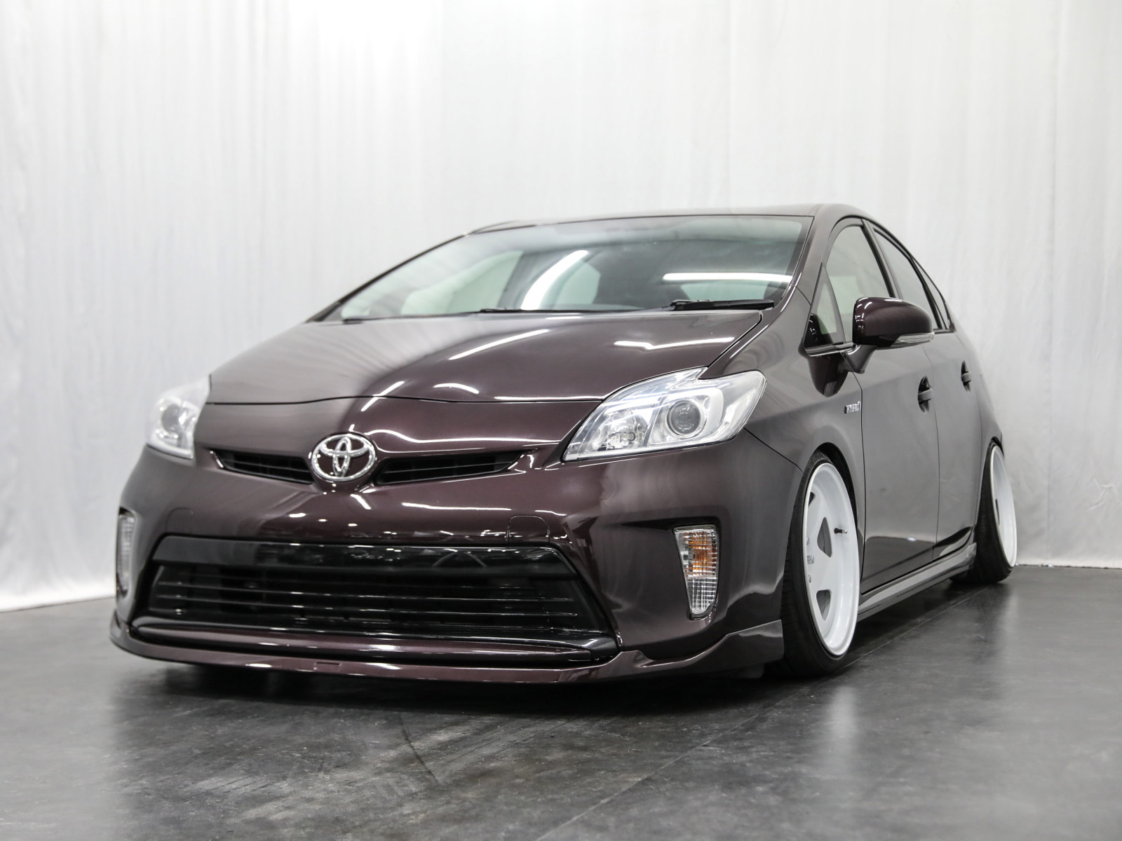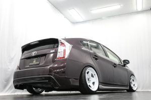 プリウス Sマイコーデ 後期/US風カスタム/フルカスタム/フロントバンパーナンバースムージング/リア6度キャンバープレート/フロント長穴加工/減衰力調整付き新品フルタップ車高調取付/深リムホイールTC01/シンプルカスタム